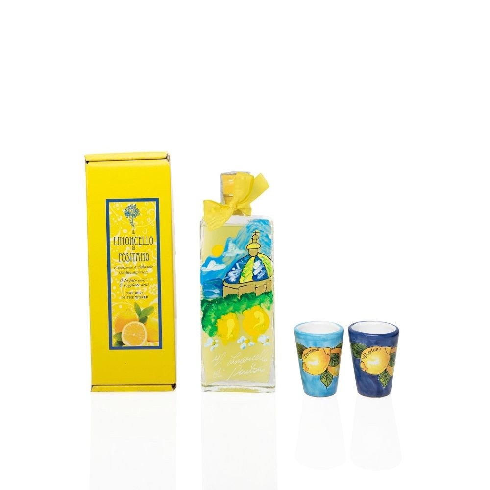 Limoncello Artigianale con bottiglia dipinta a mano con Positano 20 cl + 2 Bicchierini